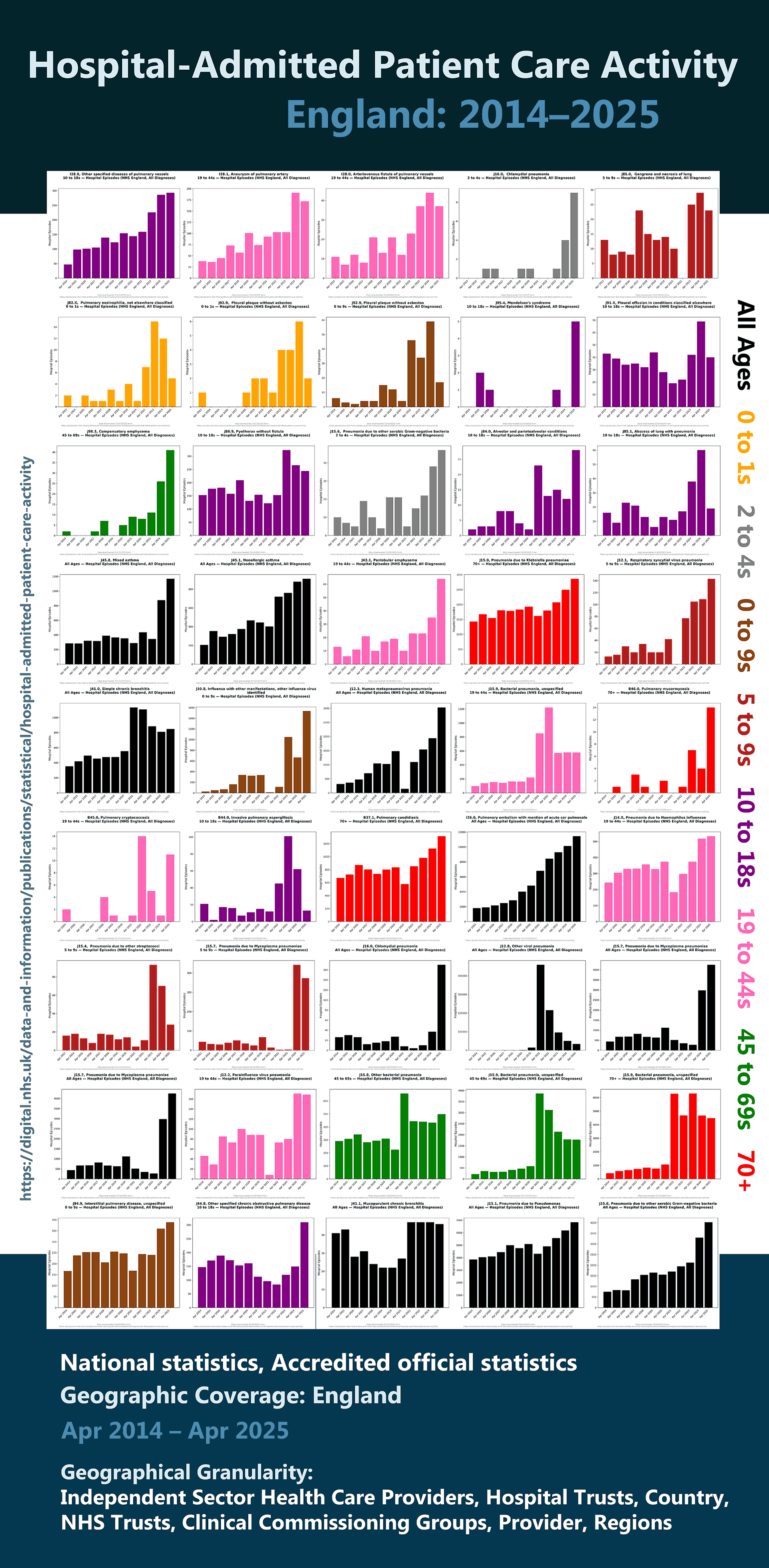 Mixed lung conditions, age 0-70+.