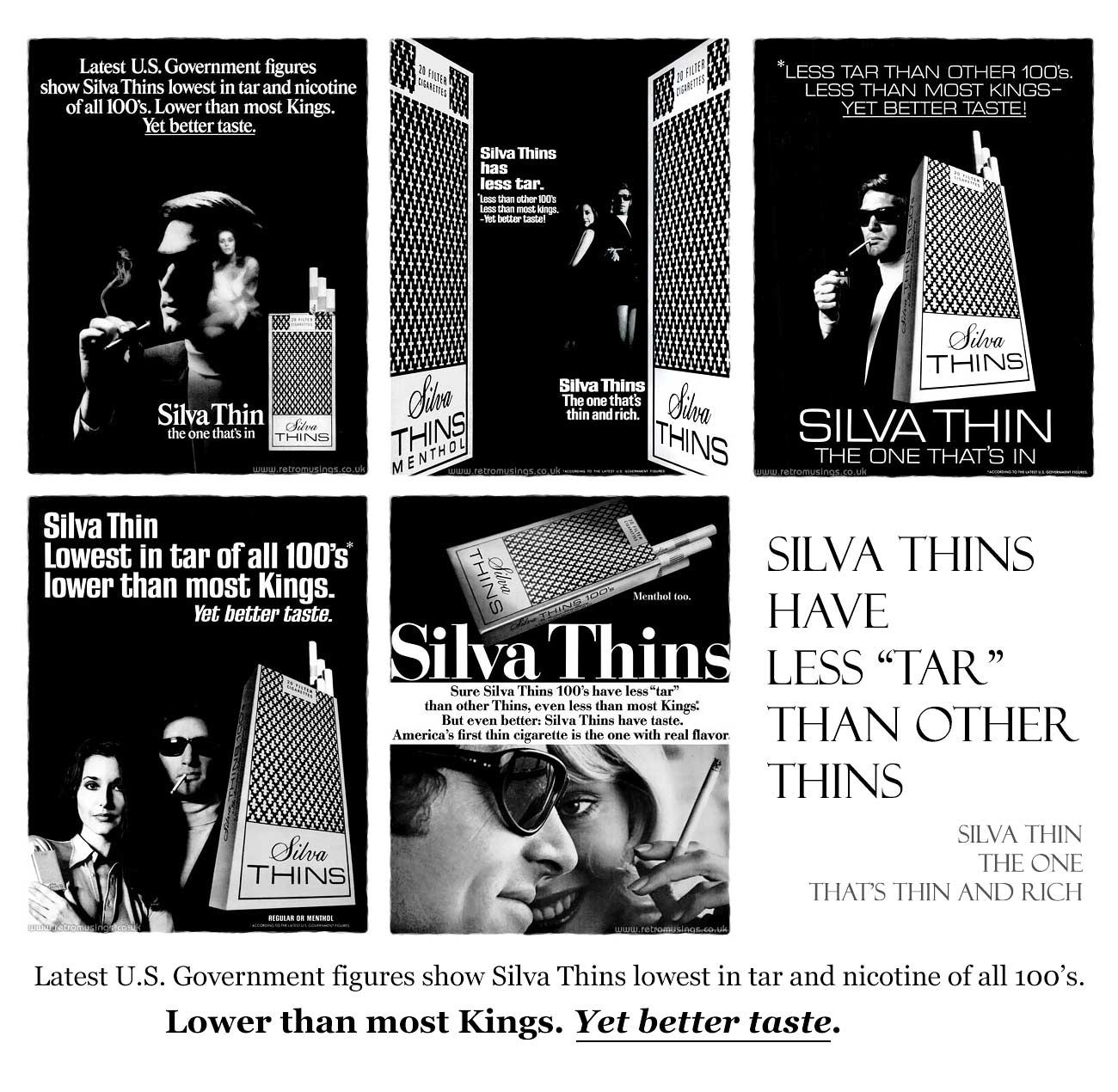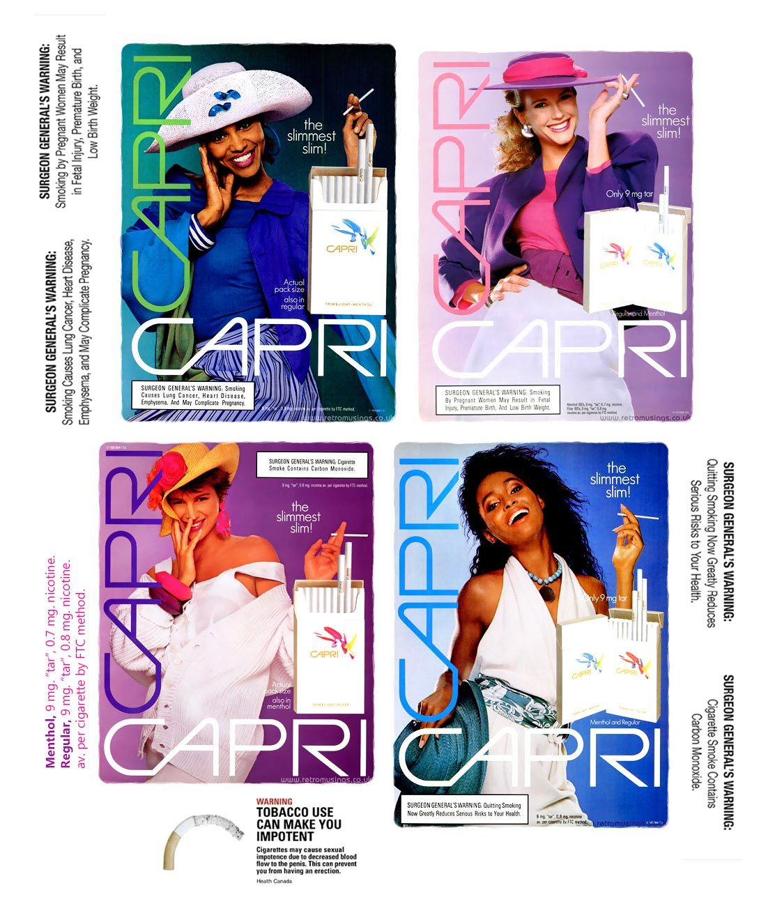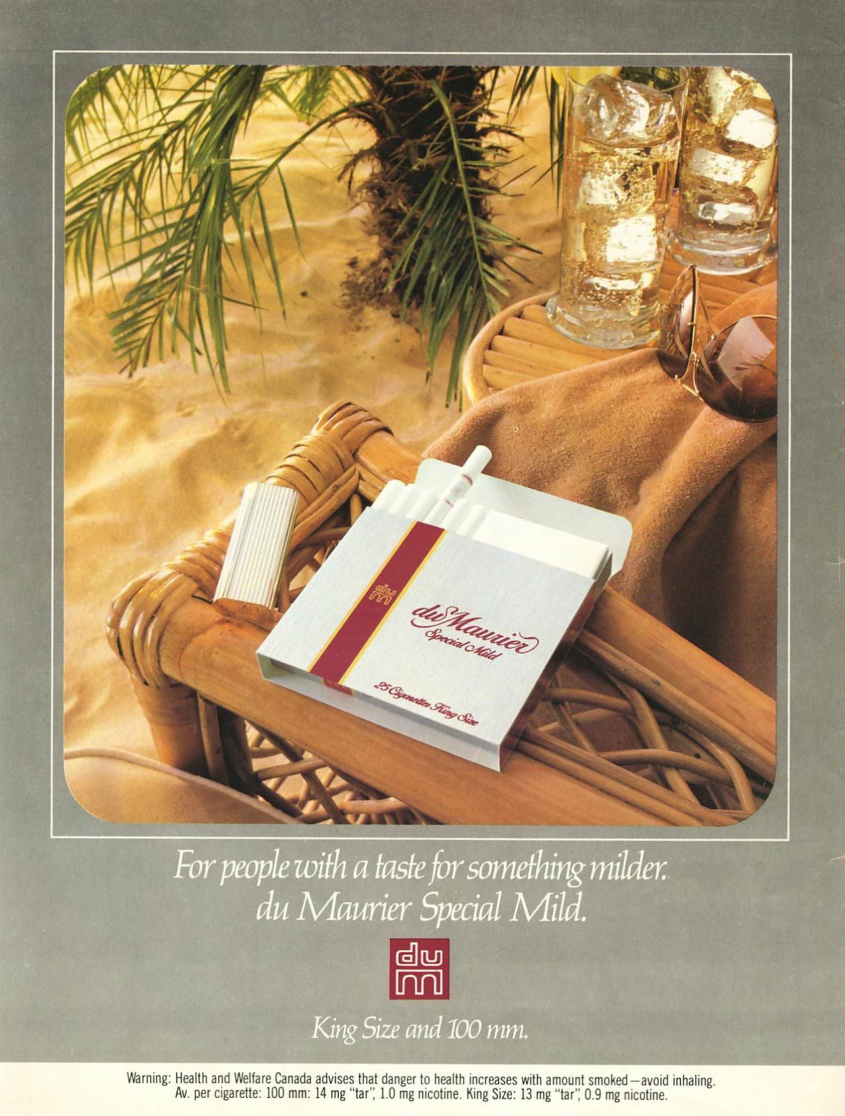 Av. per cigarette: 100 mm: 14 mg “tar”, 1.0 mg nicotine. King Size: 13 mg “tar”, 0.9 nicotine.