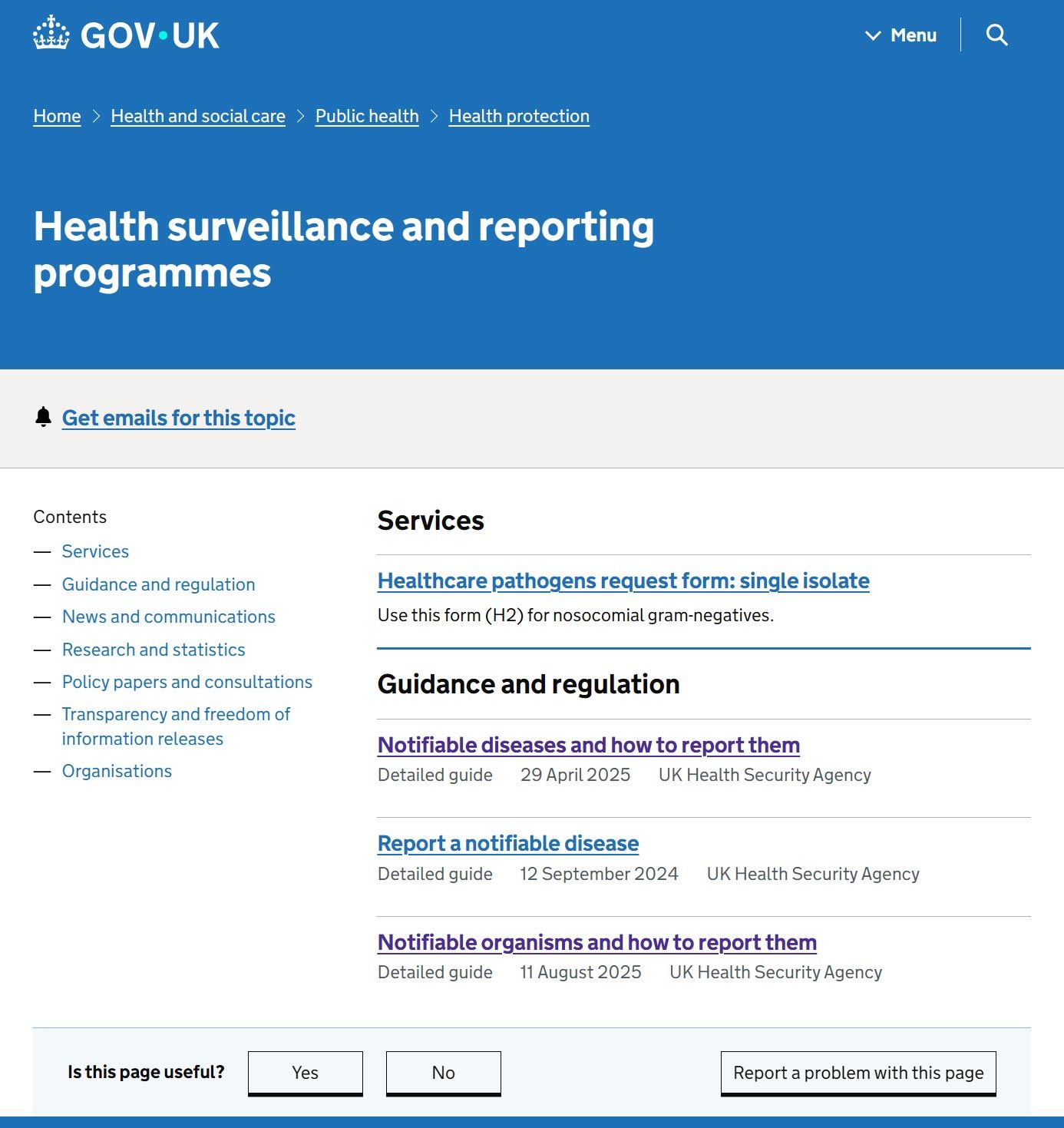 📖 (Accessed: 23 Oct 2025 ~ UK Health Security Agency) Health surveillance and reporting programmes ➤
